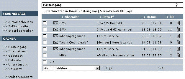 Online-Internetkurs von Norbert Böing - eMail-Auswahl