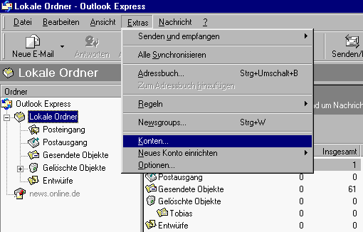 Online-Internetkurs von Norbert Böing - Outlook-Express-GRundkurs: 1. Zugangsdaten eintragen